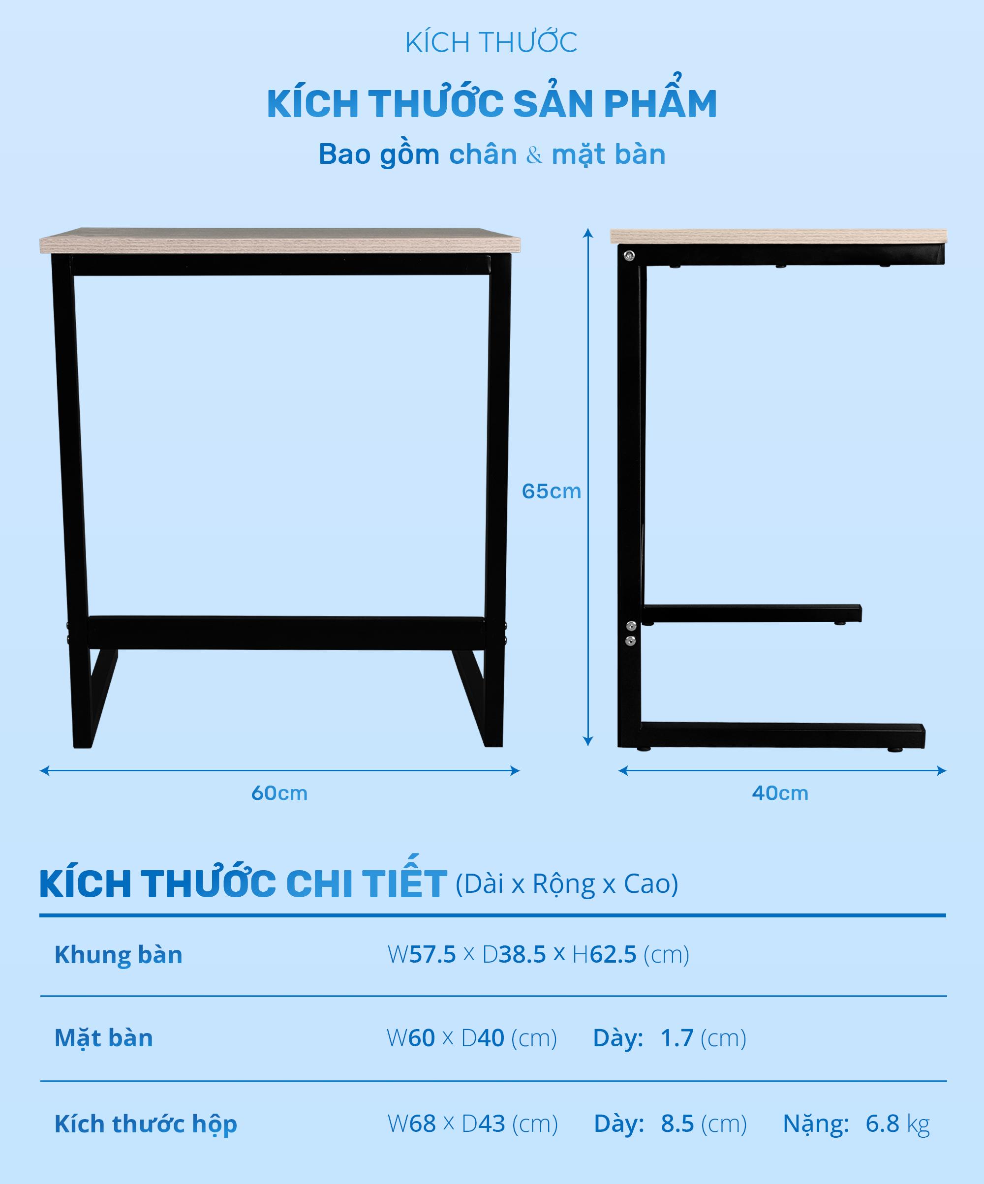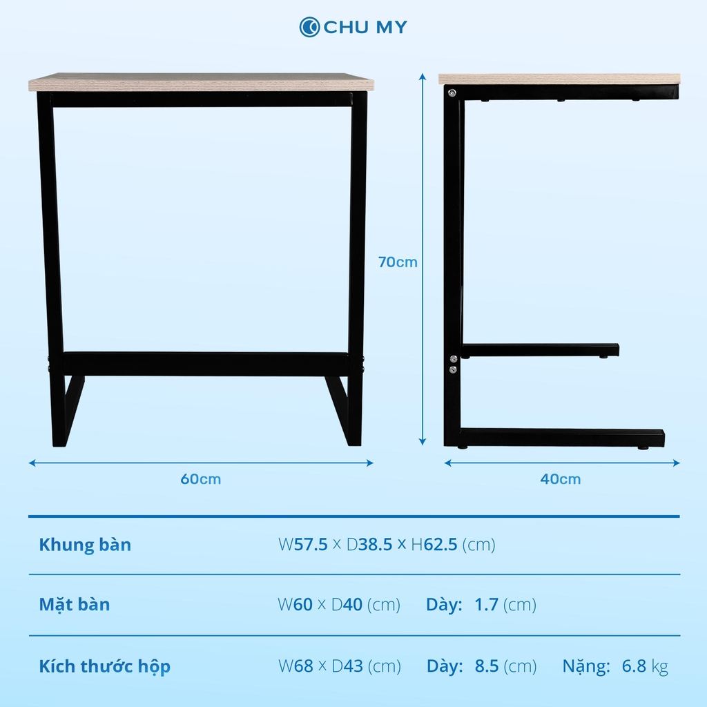 Bàn góc chữ C CHU MY chân sắt, thiết kế hiện đại, đa năng