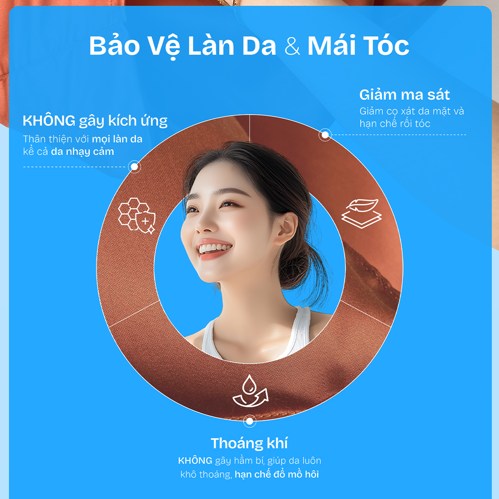 Bảo vệ tóc: Bề mặt vải mịn màng giúp giảm tối đa ma sát, hạn chế tóc bị rối, gãy rụng và xơ cứng sau khi ngủ dậy.