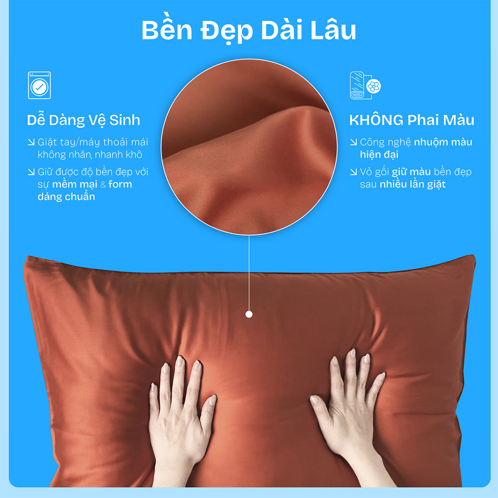 Thoáng khí vượt trội: Nhờ khả năng thoáng khí và hút ẩm cực tốt, vỏ gối luôn khô ráo và mát mẻ, đặc biệt phù hợp với khí hậu nóng ẩm tại Việt Nam, giúp bạn không còn cảm giác hầm bí.